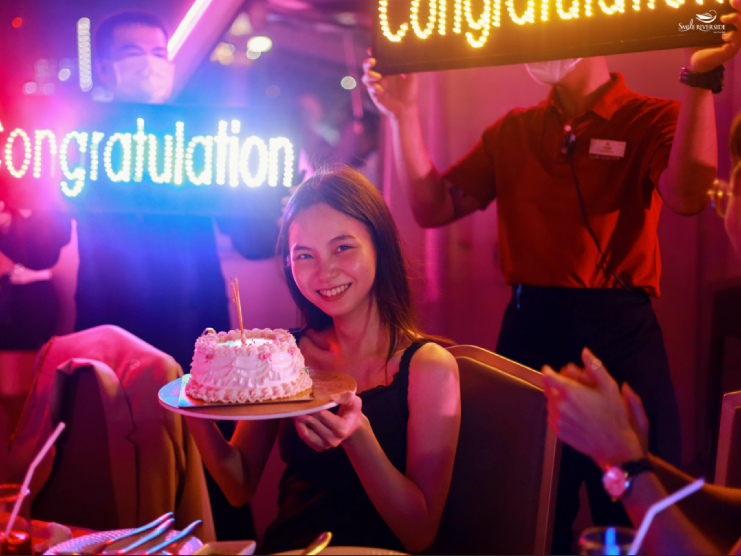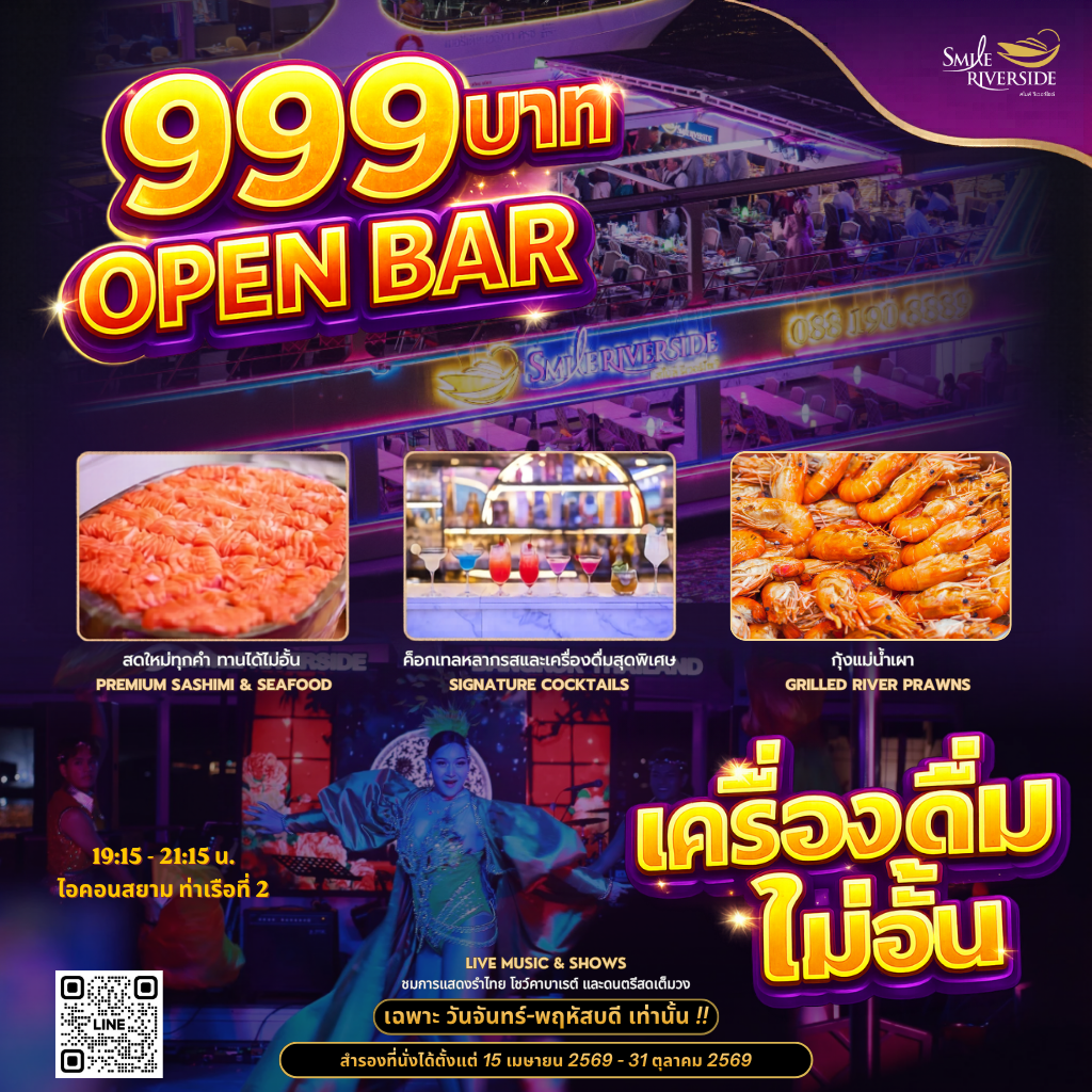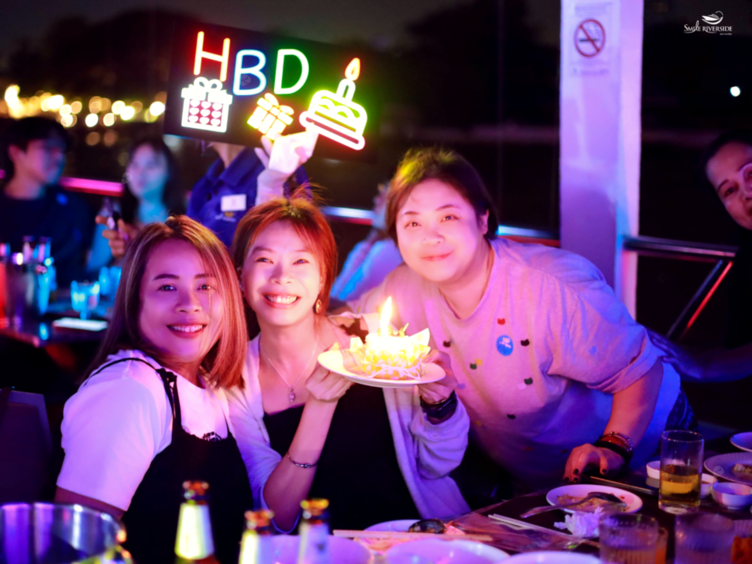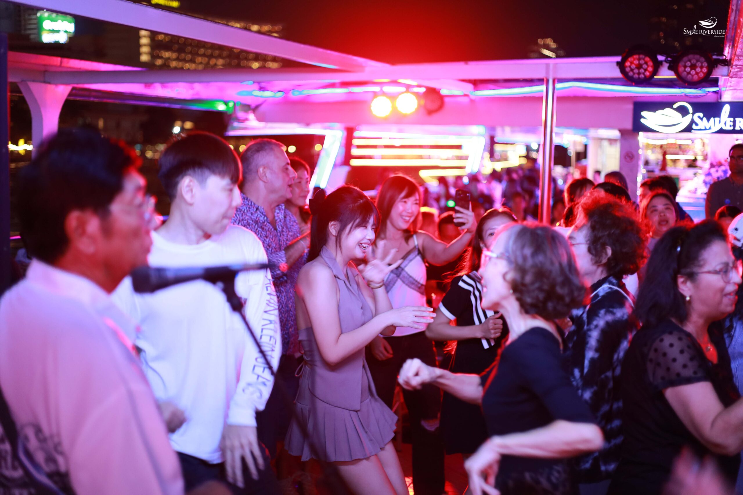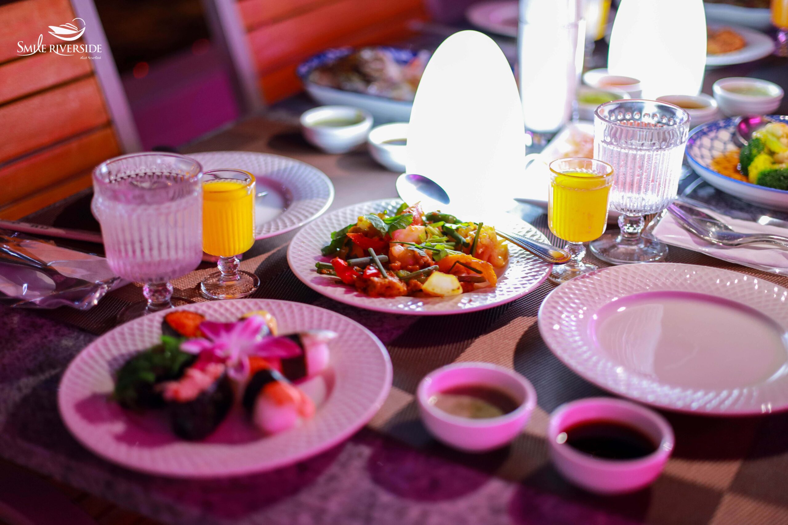หากกำลังมองหาสถานที่รับประทานอาหารเย็นในบรรยากาศล่องเรือในแม่น้ำเจ้าพระยา พร้อมกับชมทิวทัศน์ที่สวยงามทั้งแบบสถาปัตยกรรม ประติมากรรม และวิถีชีวิตของชาวกรุงสองฝั่งลำน้ำ เราขอแนะนำนี่เลย เรือ Smile Riverside (สไมล์ ริเวอร์ไซด์) เรือสำราญ 2 ชั้น สามารถจุผู้โดยสารได้ถึง 380 ท่าน โดยชั้นที่ 1 เป็นระบบปรับอากาศเย็นสบาย ชั้นที่ 2 เปิดโล่งรับอากาศแบบธรรมชาติแบ่งเป็น 2 ส่วน ส่วนท้ายเรือมีหลังคา ส่วนที่ 2 บริเวณด้านหน้าและหัวเรือไม่มีหลังคา ท่านจะได้รับความเพลิดเพลินกับบรรยากาศ การแสดงสดบนเรือ เต็มอิ่มกับอาหารในแบบบุฟเฟต์นานาชาติ ตลอดการเดินทาง 2 ชั่วโมงท่านสามารถเช็คอินได้ก่อนเวลา 18:00 น. ที่ห้องขายตั๋วของเรือ Smile Riverside ตั้งอยู่บริเวณชั้น G ของ Icon Siam จากนั้นมารอลงเรือที่ท่าเรือ 2 เมื่อท่านลงเรือจะมี Welcome Drink ไว้ต้อนรับ นอกจากนี้ ยังมีอาหารในแบบบุฟเฟต์นานาชาติ พร้อมผลไม้ และของหวานหลากหลายรายการ อาทิเช่น กุ้มแม่น้ำเผา หอยชิลีอบชีส ปลาแซลมอนสด เป็นต้น ในส่วนของการแสดงสดจะมีวงดนตรี Smile River Band การรำต้อนรับ การแสดงโขน และการเต้นละติน ของเหล่านักแสดงมืออาชีพไว้ให้ท่านได้ชมอย่างจุใจ